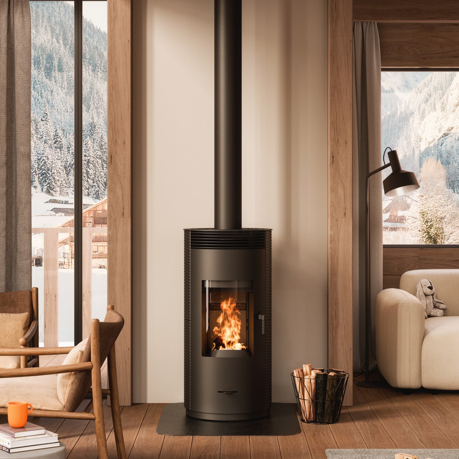Med en nominel effekt på 8 kW og en virkningsgrad på hele 83 % får du en kraftfuld varmeoplevelse – samtidig med at træforbruget holdes lavt.